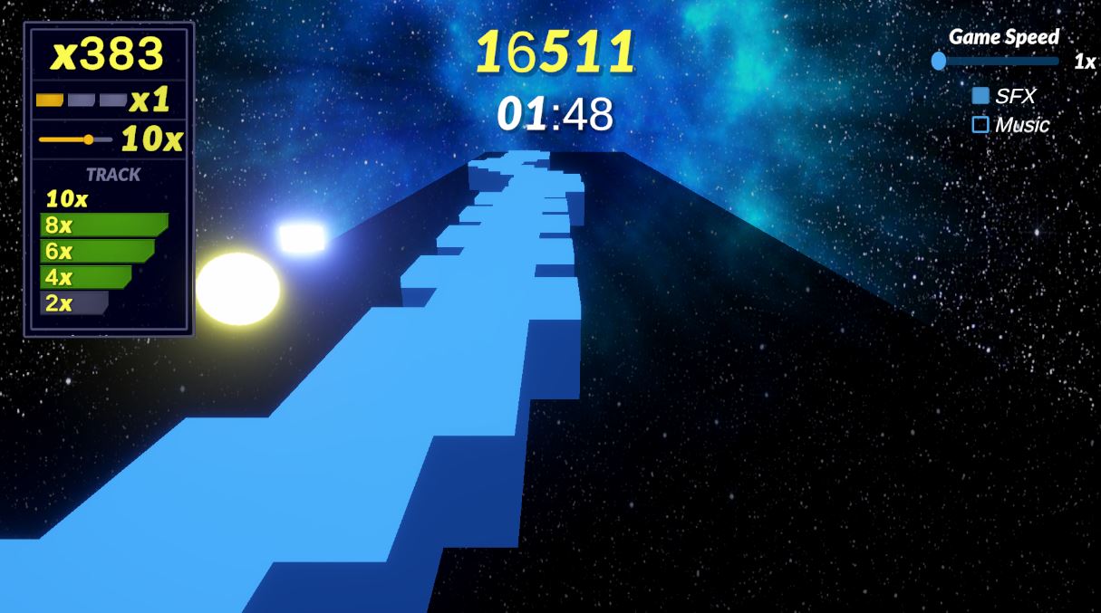 Sprint to the end of this "endless runner"! Stay on the path, stack your multipliers, and push your score to new levels. See if you can reach the limit before time ends....Every second counts...How high will you reach?